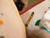 コゲのおかげで髪の毛をクレヨンで塗られるのを避けることができました。