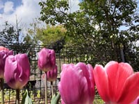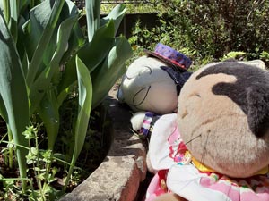 ちょもたちのお花見はお庭のチューリップが定番になっています。