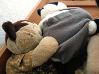 ちょも「安全かくにんヨシちょも!」 今日は避難訓練したちょも。ホワイティ家とダビッドソン兄弟は旅行中だったちょも。