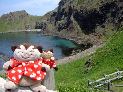 北に見える島はトド島(無人島)です。その向こうはロシア(サハリン)です!
