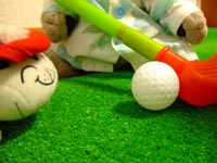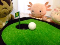 チョロもそのうちゴルフを覚えるちょもよ!ゴルちゃん。今度は外でパターゴルフしようちょもね!