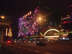 ビルの壁一面のネオンがアニメーションしています。