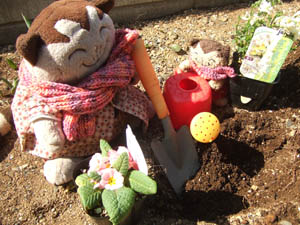 来月には花がたくさんお店に並ぶちょも。もっと植えて庭をステキにするちょもよ♪