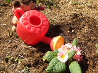 ちょも「ここに植えるちょも。サオトメは水をあげるちょもよ。」