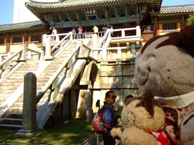 ちょも「世界遺産『仏国寺』の門の前ちょも!駐車場は満車ちょも!」