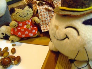 じゃがまる「昨日ちゃちゃまると山で木の実拾って遊んでいたんだ。お土産だよ。」